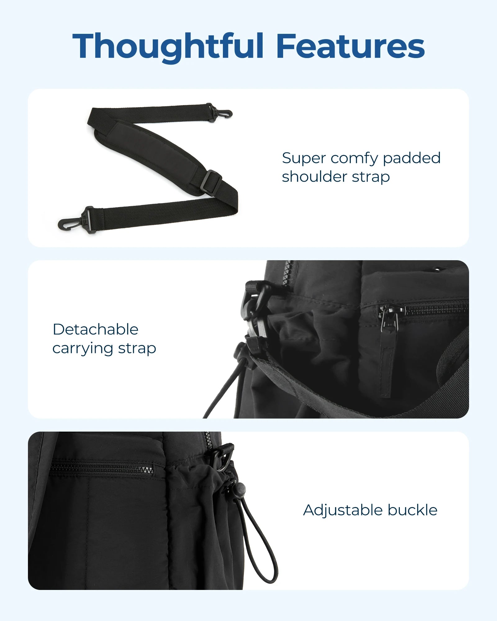 🎒 Comfortable shoulder strap for hands-free carrying