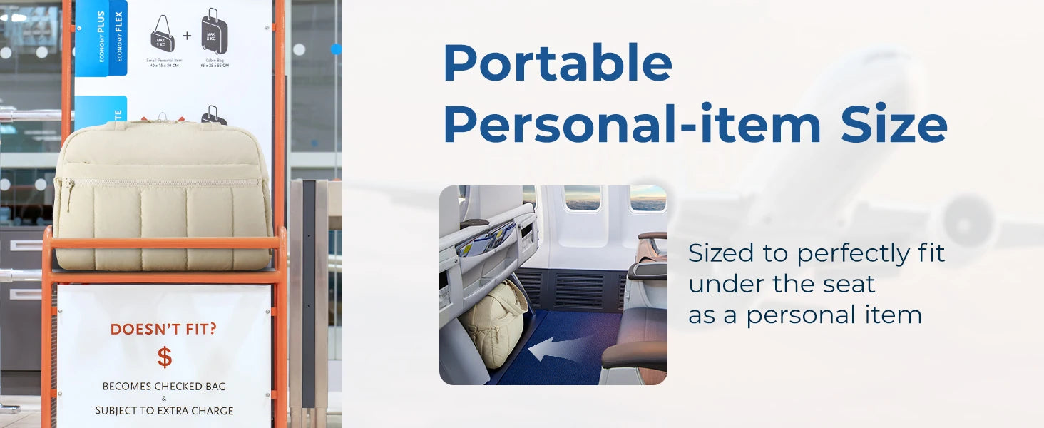 📌PORTABLE PERSONAL ITEMS: TSA-free duffel bag fits perfectly under your airplane seat and exterior zippered pocket allows for quick access to essentials during the flight. Plus, it easily slides onto the luggage handle and stays in place. Make airport travel worry-free